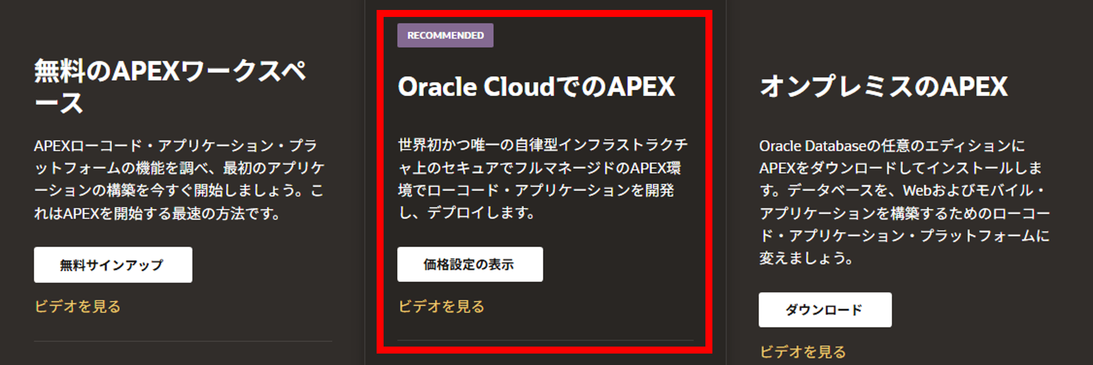 (OCI上以外のOracleデータベースには別途インストールが必要だが、APEX自体は無料で使用可能)