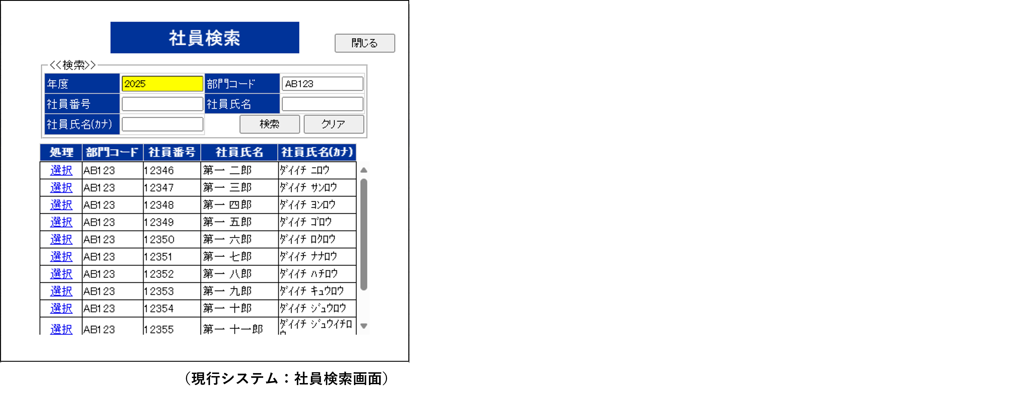 ・クラシック・レポート:社員検索画面の検索結果一覧部分に使用。