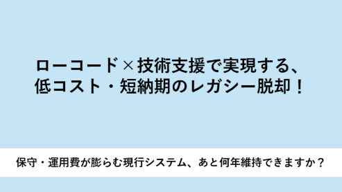 ローコード×技術支援で実現する、 低コスト・短納期のレガシー脱却!