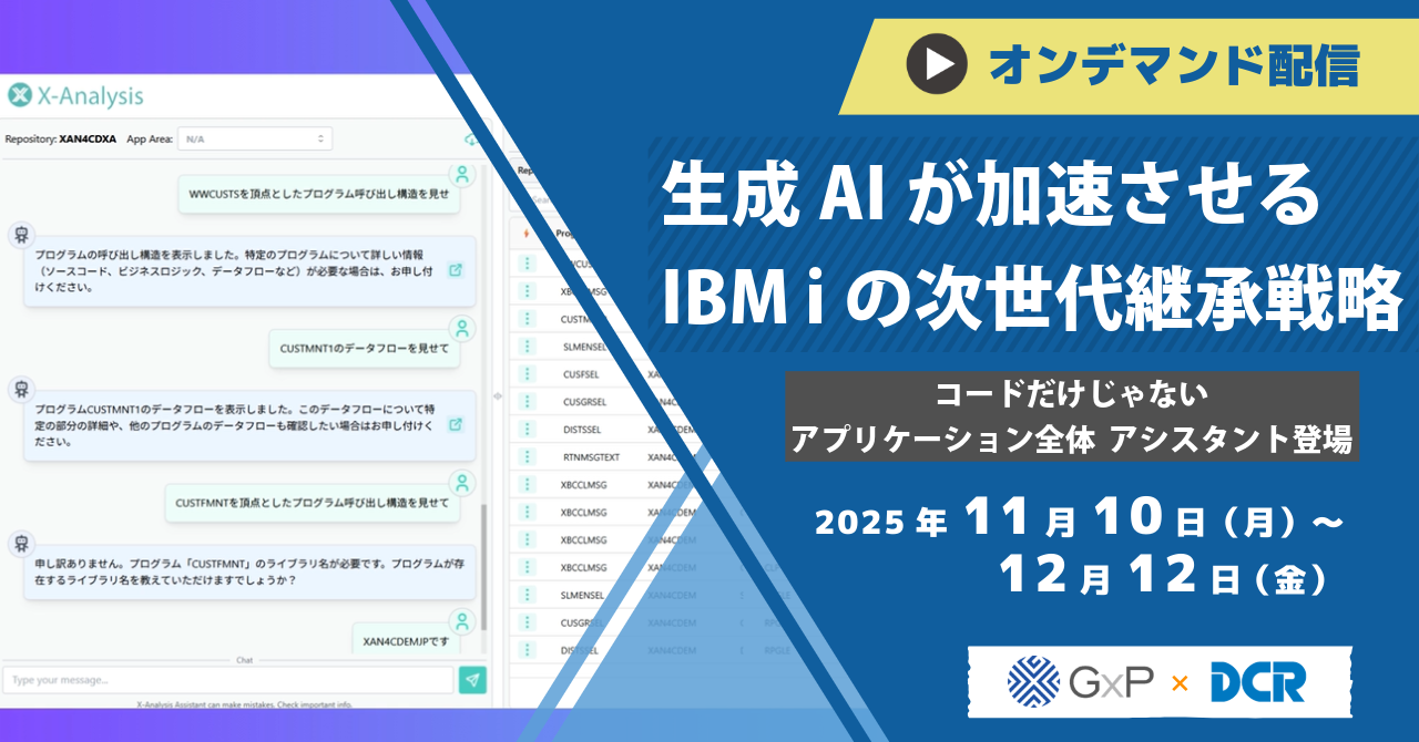 生成AIが加速させるIBM iの次世代継承戦略 ~コードだけじゃないアプリケーション全体アシスタント登場~ |