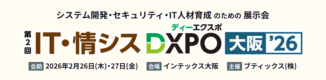 このたび、2026年2月26日(木)~2月27日(金)に開催される 『IT・情シスDXPO大阪’26』 システム・アプリ開発展に、次のソリューションを出展する運びとなりました。